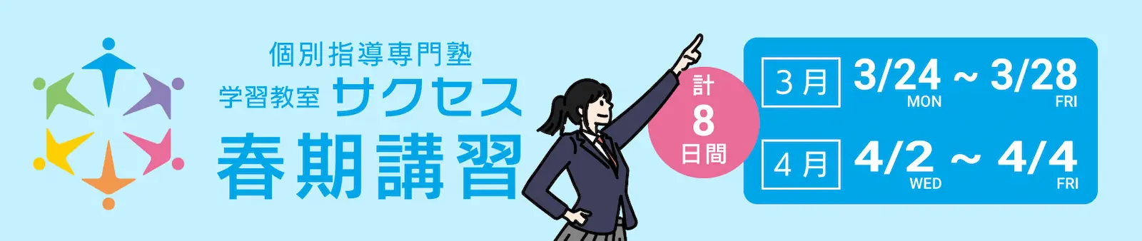 伊丹市で長年にわたり、地域密着の個別指導専門塾としてたくさんの生徒と関わってきました。とにかく成績を上げたい!学習習慣をつけて勉強のモチベーションを上げたい!とお考えなら、ぜひサクセスにお越しください。
