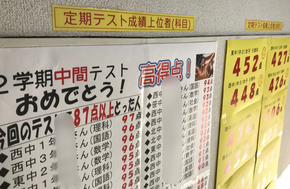 さて、中間テストが終わりましたので、いつもながらこういった上位者計もしています。
