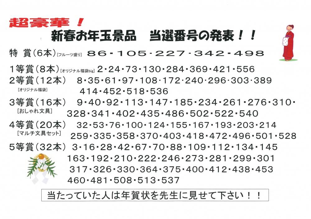 「当たったよ!」と年賀状を持ってきてくれた卒業生が3名!