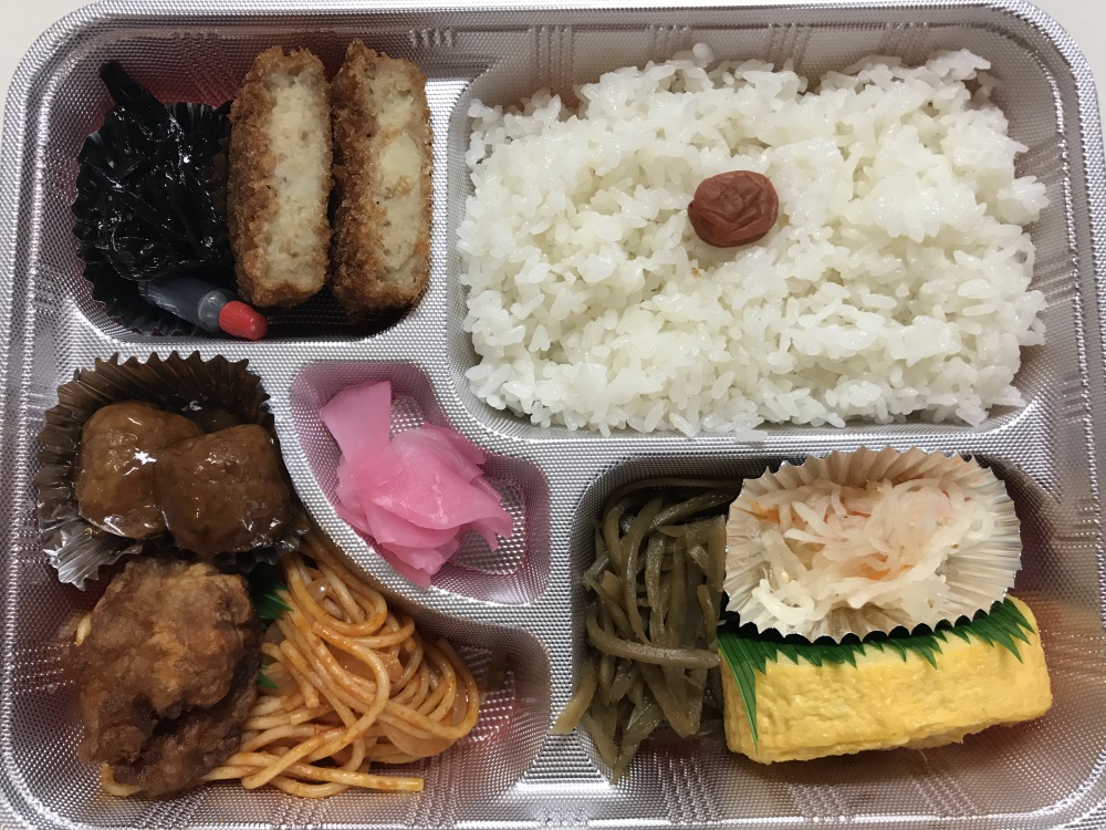 ※コンビニ的な食事になるのではなく、地元の仕出し弁当屋さんや、手造りのパン屋さんに朝の配達をお願いしましたので、そのあたりはばっちりでます(^_^)v (上から順に初日の夕食、2日目の朝食、昼食です)