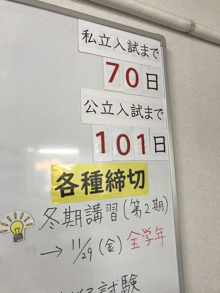 さて、教室では前のホワイトボードにも写真のように「カウントダウン」を表示しています。特に受験生には1日1日を大切にしてほしい!