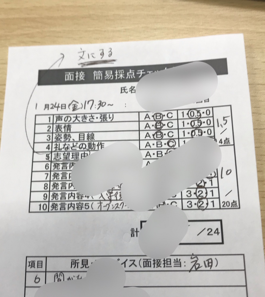 志望理由が固まっていない子が多いので、そういう子には、文をまず作るよう指導しています。