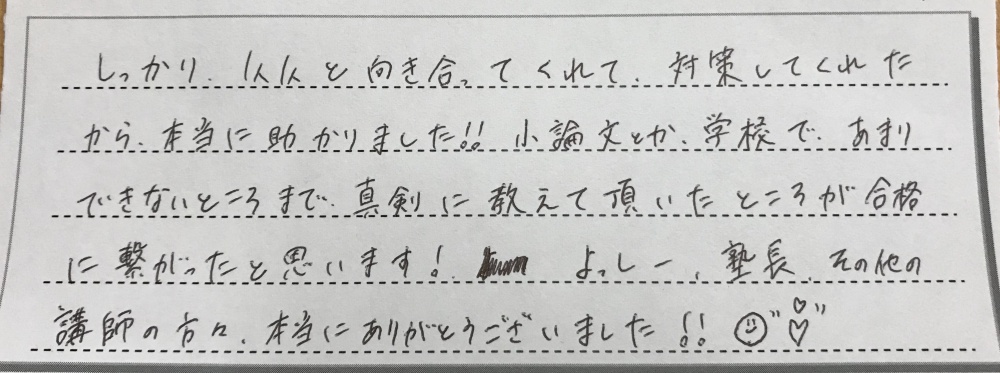 ごく一部ではありますが、このような喜びの声は塾屋冥利に尽きます。