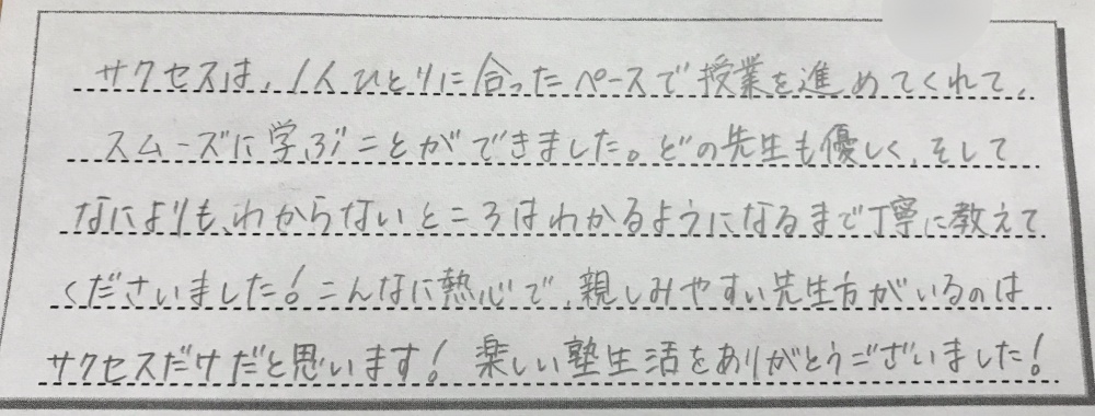 「こんなに熱心で、親しみやすい先生がいるのはサクセスだけ」素晴らしいお褒めの言葉…m(_ _)m