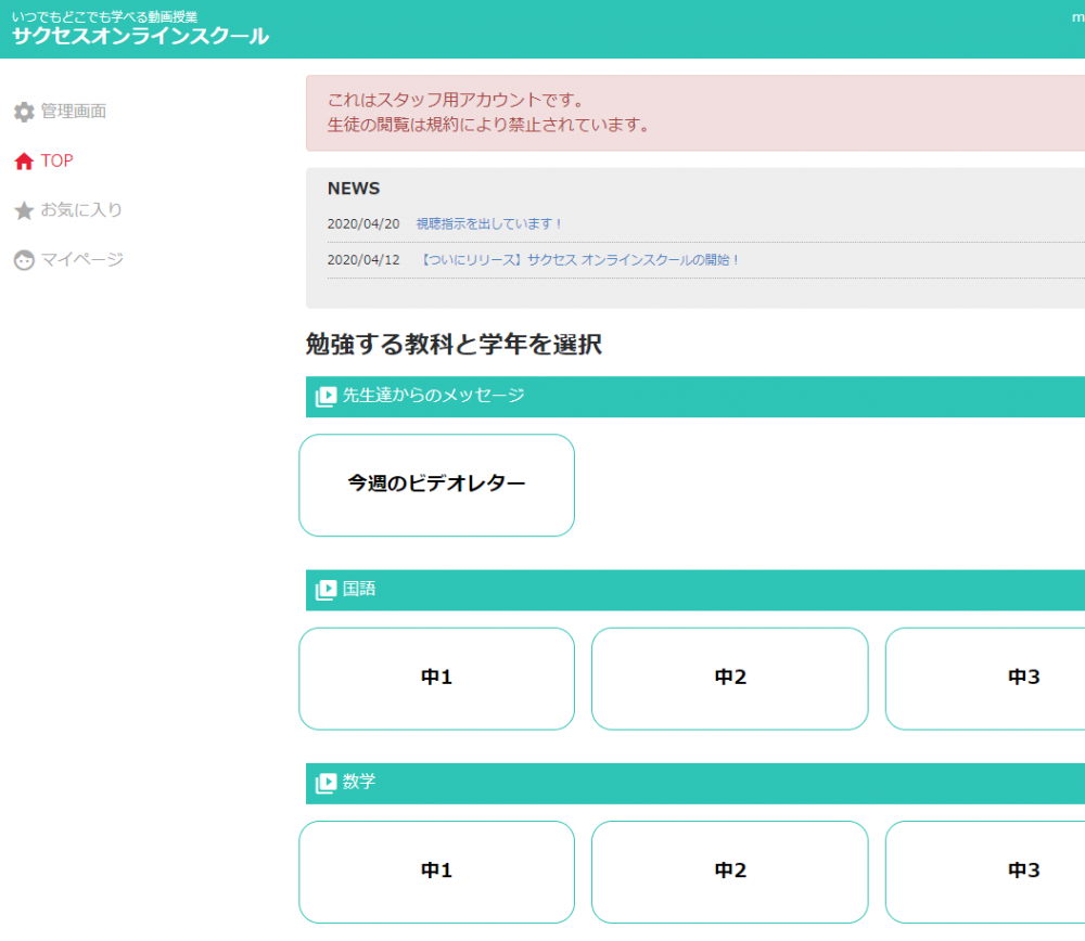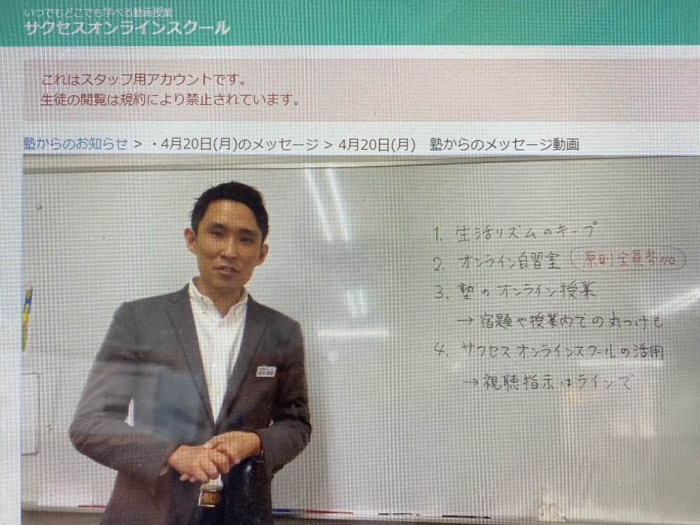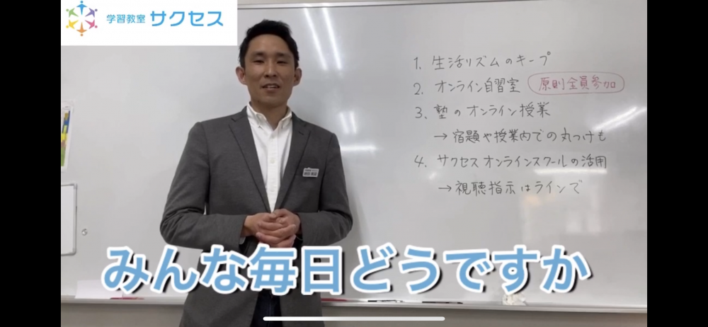 それがこちら。中学生には「サクセスオンラインスクール」内のトップ部分で見られるようにしており、他はYouTubeに限定公開していますので、URLのリンクを送れば見られるようにしています。