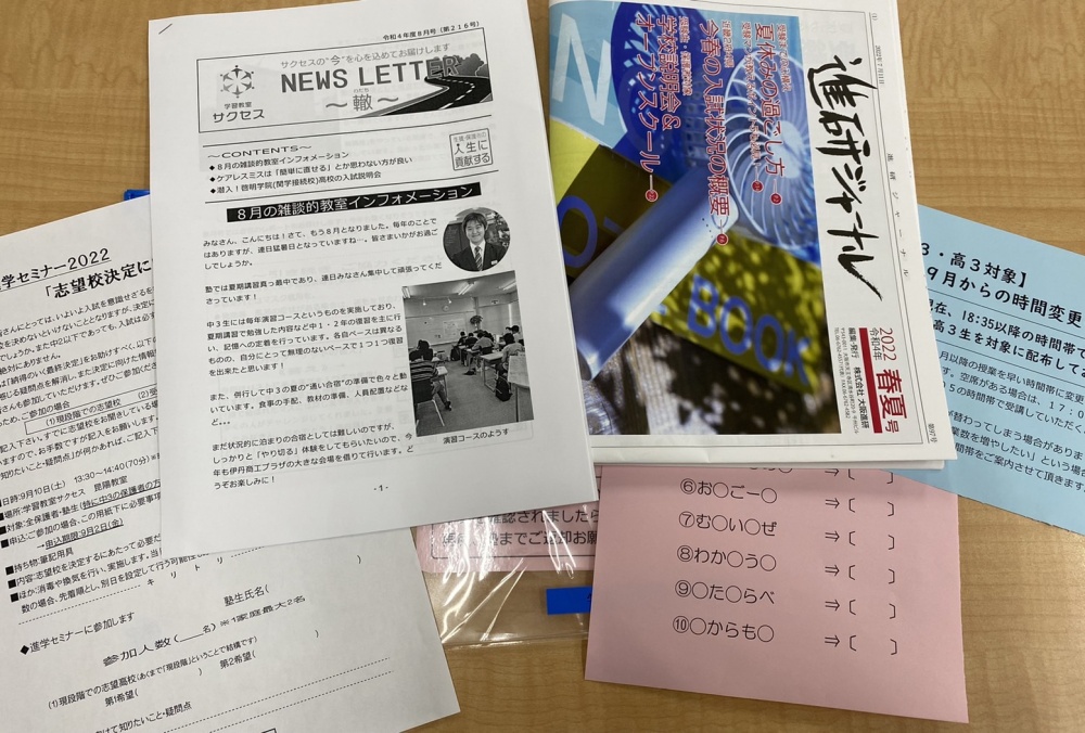 さて、教室では8月のお便り(ニュースレター)を配布したり、色んな案内物を配布するなどし月初を迎えています。