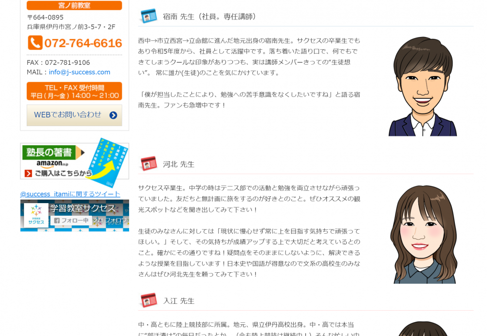 さて、最近更新ができていなかった講師紹介ページのことです。