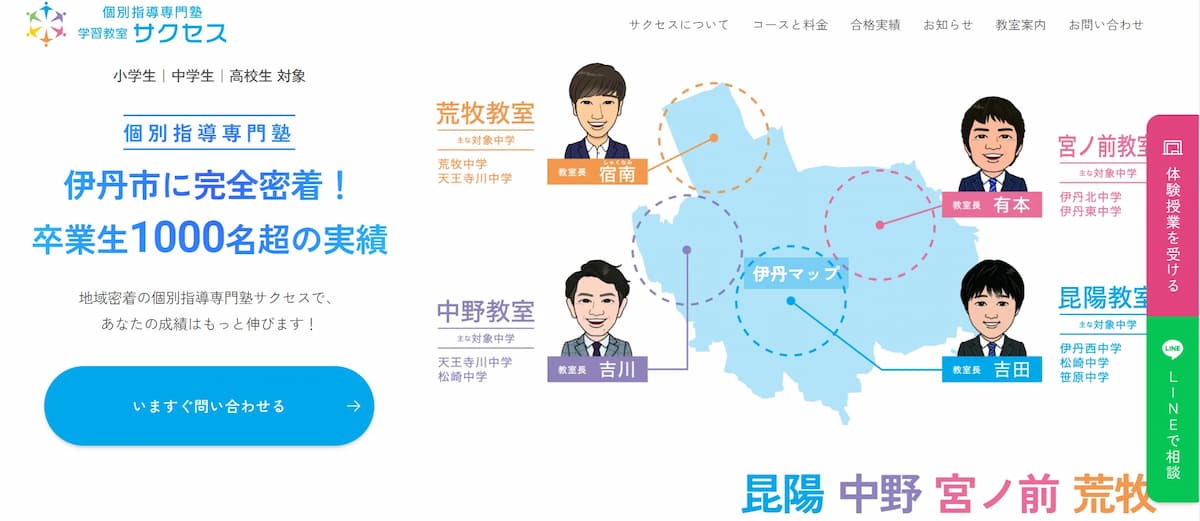 ✅教室のカバー地域(目安)をトップページに配置。教室の位置が直感的にわかり、クリックすればすぐ飛べるようにしました。