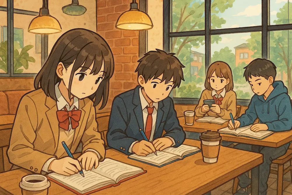 最近、カフェや喫茶店(マクドナルドなどファストフード店も含む)で勉強する中高生をよく見かけるようになりました(さすがに小学生は見ませんが)。昔はそんな子、あまりいませんでしたよね…。