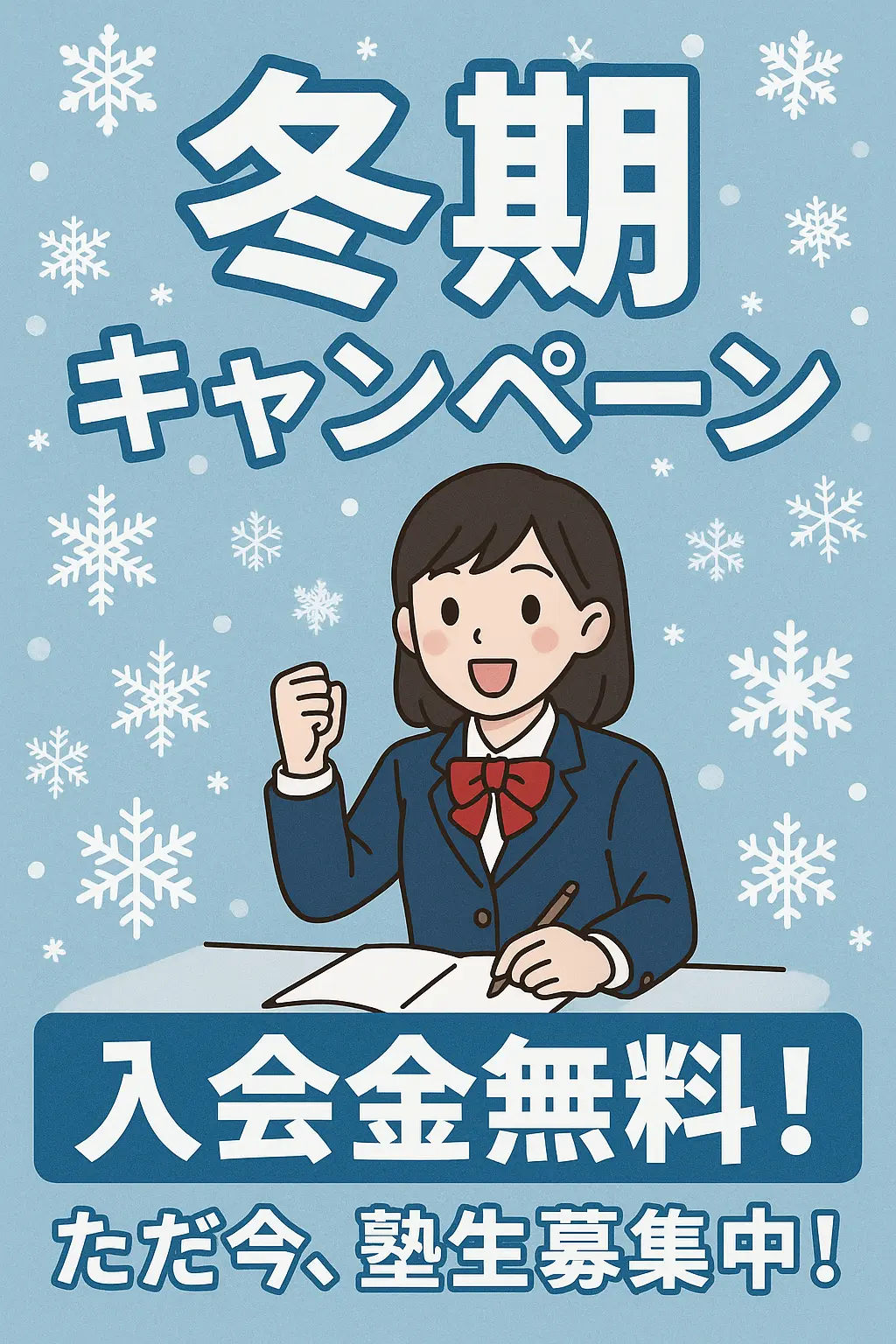 学習教室サクセスでは、【2025】今年も冬の入会キャンペーンを実施いたします。この時期にご入会いただくと、通常よりもお得にスタートすることができます。