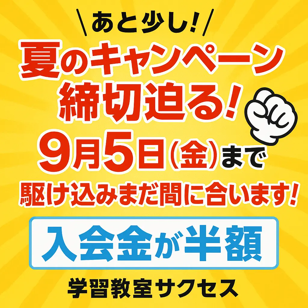 学習教室サクセスでは、【2025】今年も冬の入会キャンペーンを実施いたします。この時期にご入会いただくと、通常よりもお得にスタートすることができます。