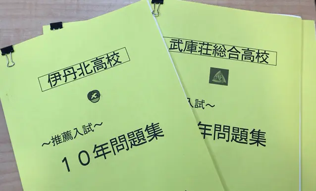 高校の「独自問題」のストックが塾にあり、傾向に合わせて対策します。面接対策もするので、合格率をトータルに高めます。学校の独自問題は塾で答案を作り役立ててもらっています。入試前は傾向や字数に沿った小論文の演習をしていきますし、面接練習をしていきます。面接練習では、各回観点別に採点し、1回1回を充実させ結果に繋がるようにもっていきます。