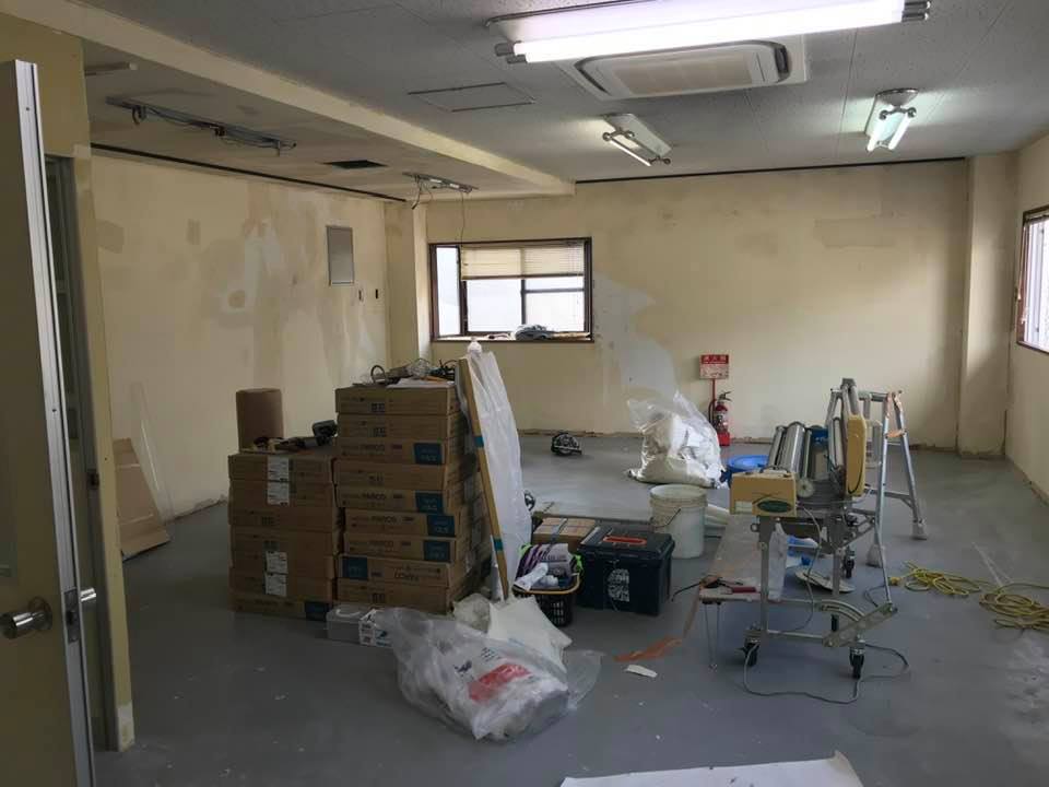 内装も入り、床(タイルカーペット)や壁のクロスも新しくなり、いい感じに仕上がってきました。