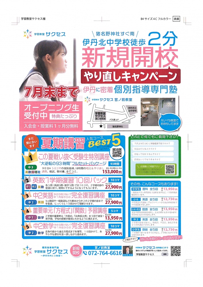 さて、「新規開校やり直しキャンペーン」も7月末までと迫ってきました。