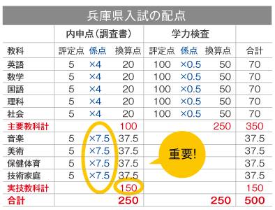 兵庫県の公立入試の合否の決まり方について説明し、内申点の算出方法も伝えました。
