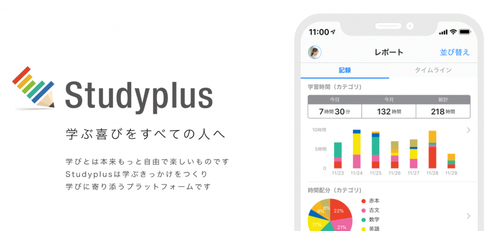 学習ログをつけることで自分の勉強時間を可視化することができ、達成感からの意欲や逆にもっとやらないとと危機感を持つことができます。
